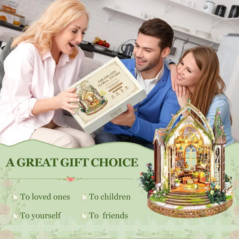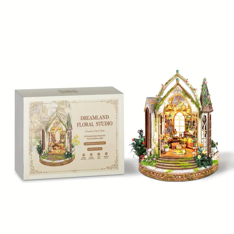 🌿 This enchanted floral studio glows to life with a gentle touch, revealing warm lights, intricate greenery, and a magical storybook interior. From arched windows to tiny books and blooming vines, every detail creates a cozy miniature world you’ll love displaying.